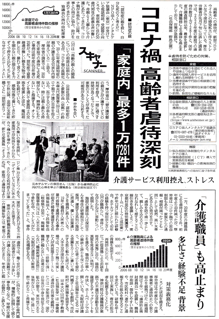 本日はコロナ禍での高齢者の虐待についての讀賣新聞の記事です。