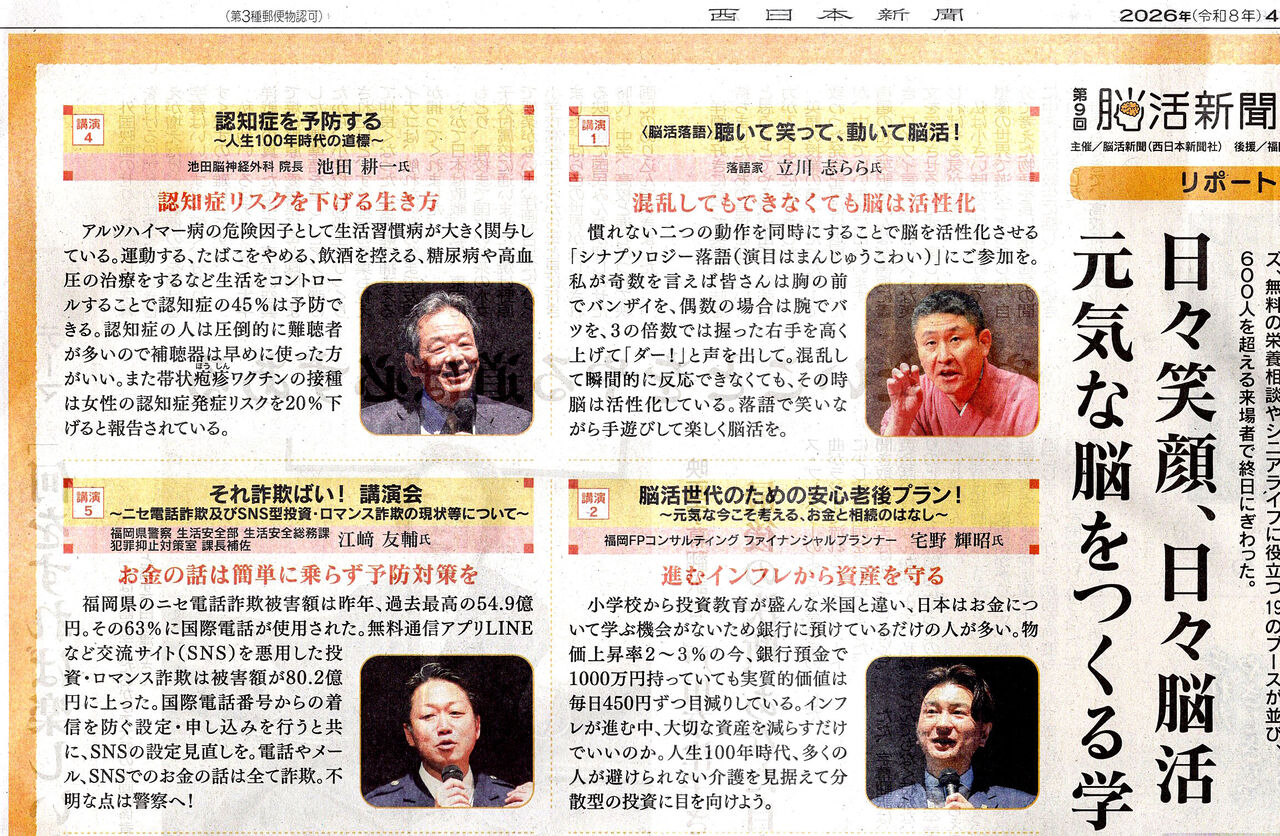 今後、年に春と秋の2回行われた脳活新聞フェアですが、今年度からは秋に1回だけになる予定とのことです。どのような形で関わっていけるかは現時点では決まっていないのですが、なるべく参加できるようにしていきたいと考えております。